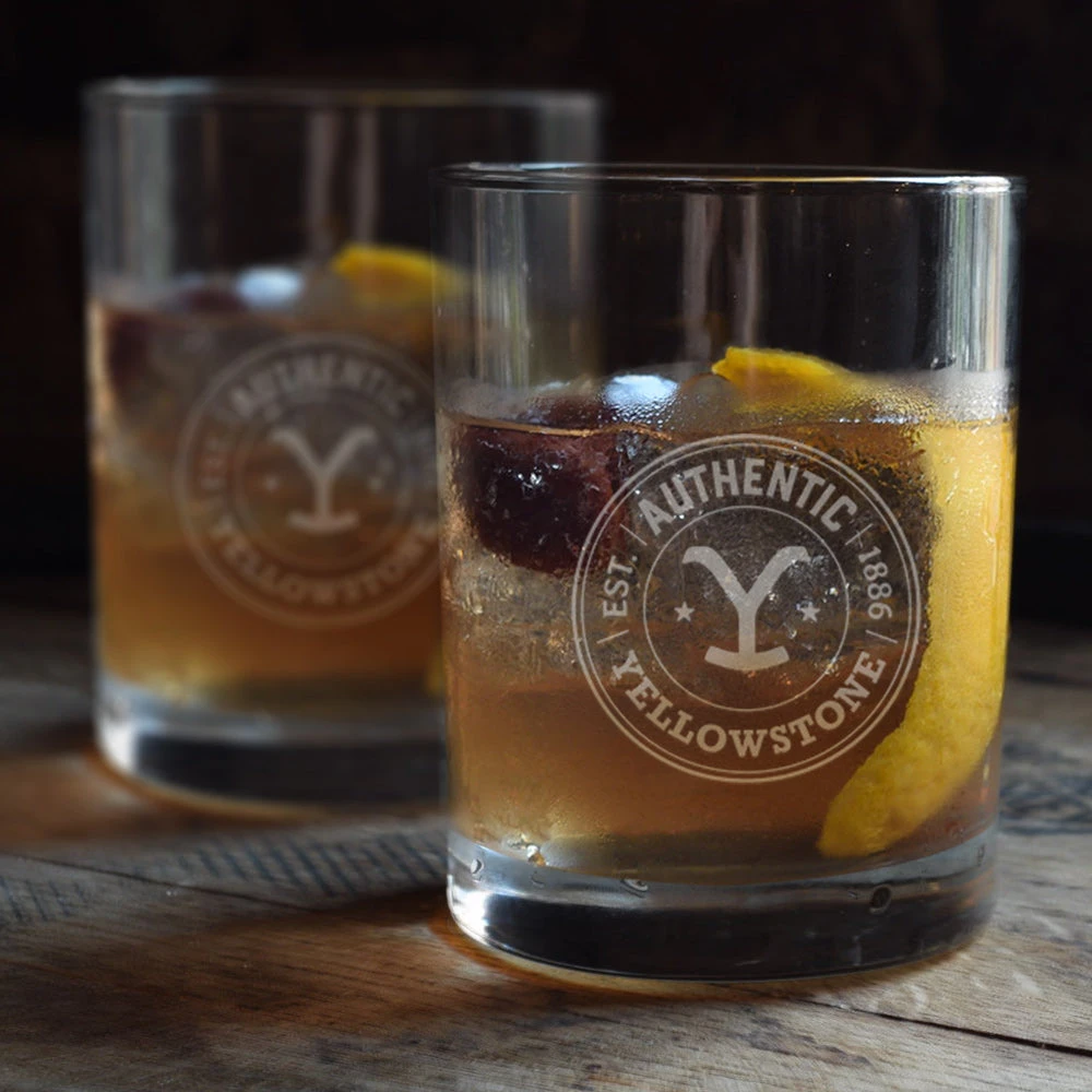 This Yellowstone Authentic Y Logo Laser Engraved Rocks Glass Set makes a great addition to your bar cart. Featuring the Yellowstone Y Authentic logo across the front, this rocks glass also makes an excellent gift for the biggest fans of Yellowstone.
