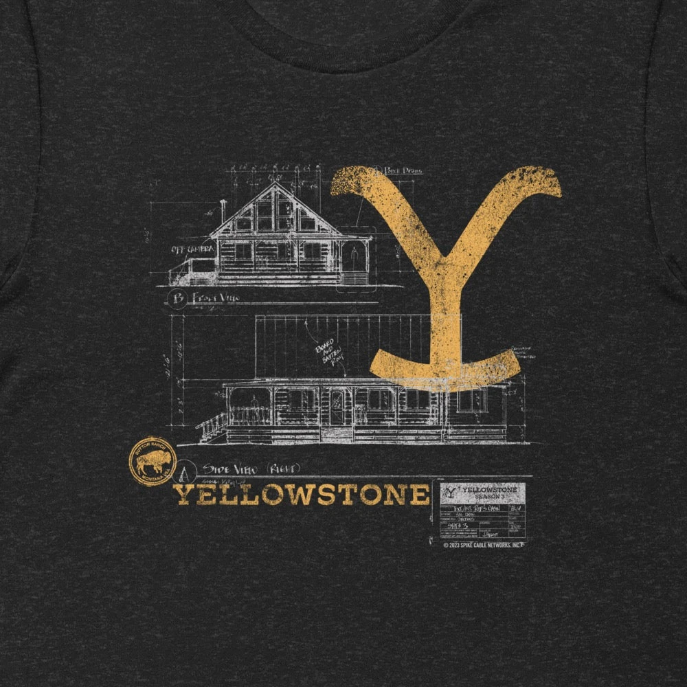 Pay homage to Rip Wheeler’s rugged character with the Yellowstone Blueprint Rip’s House Unisex T-shirt, a must-have for fans of the ranch hand.
