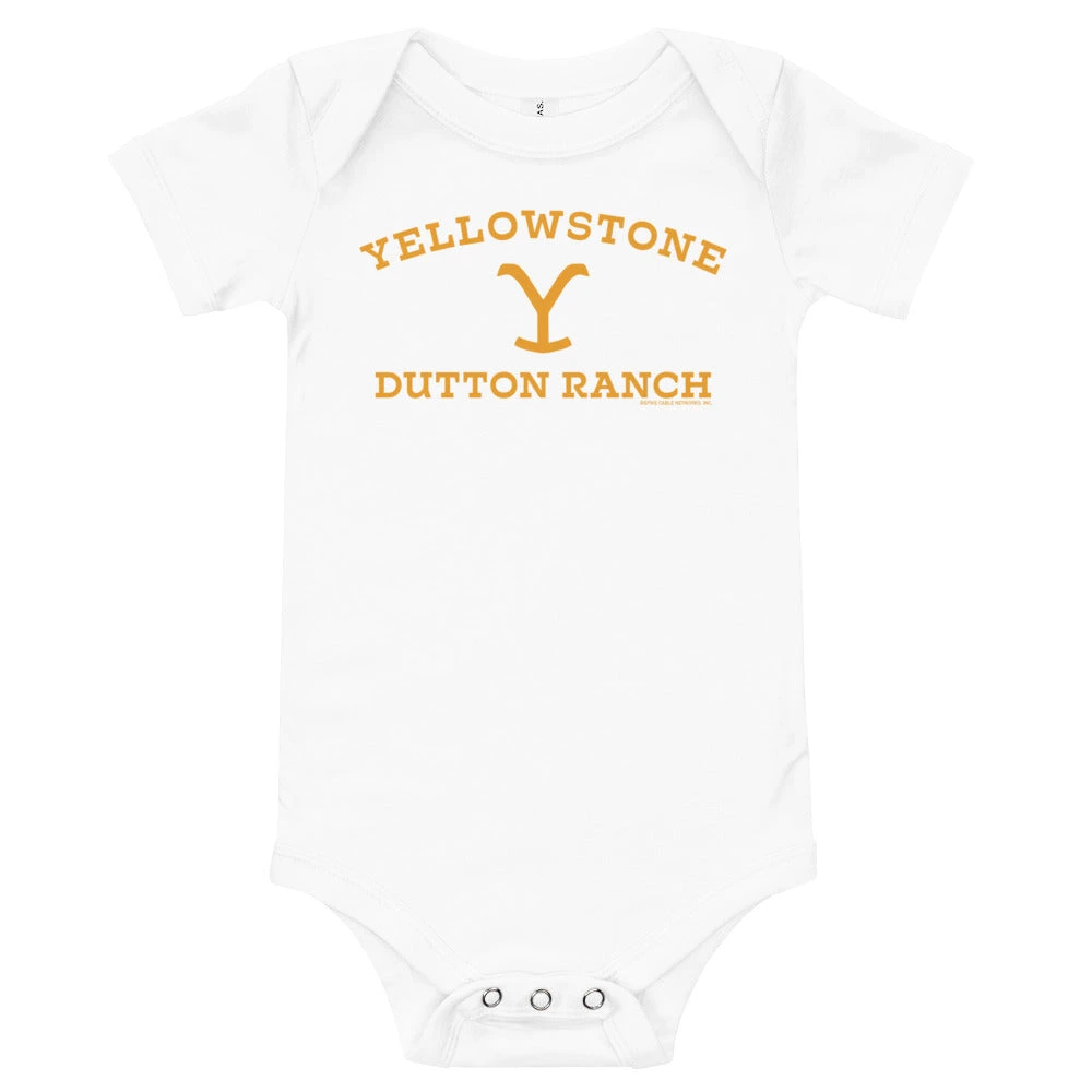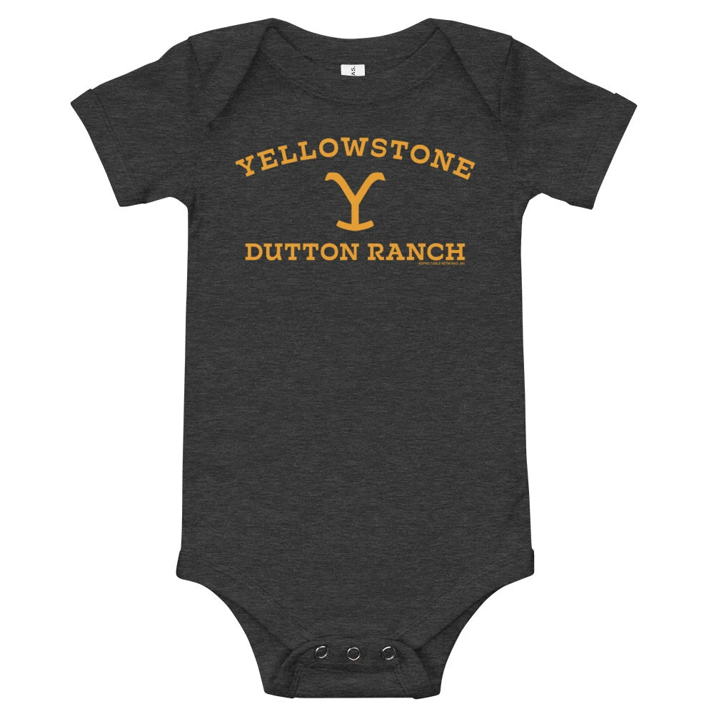 Your little ranch hand will look absolutely adorable in this Yellowstone Dutton Ranch Baby Bodysuit. With the Yellowstone Dutton design on the front and a comfortable fit, this Yellowstone bodysuit lets your baby arrive anywhere in style.
