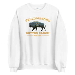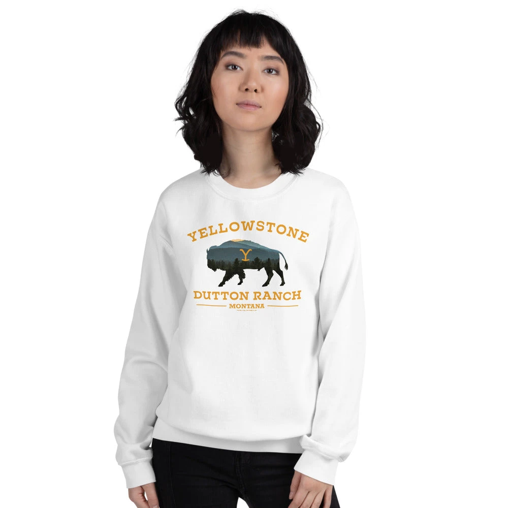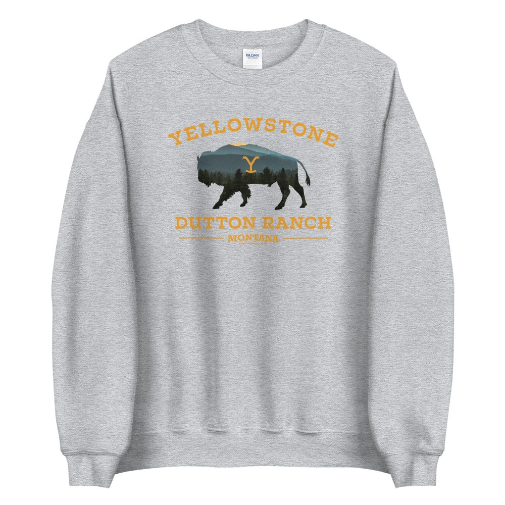 You will feel like an official ranch hand when you wear this Yellowstone Dutton Ranch Bison Unisex Crew Neck Sweatshirt. With a cozy fit for your Yellowstone marathons, this Dutton Ranch sweatshirt is perfect for any fan of the series.