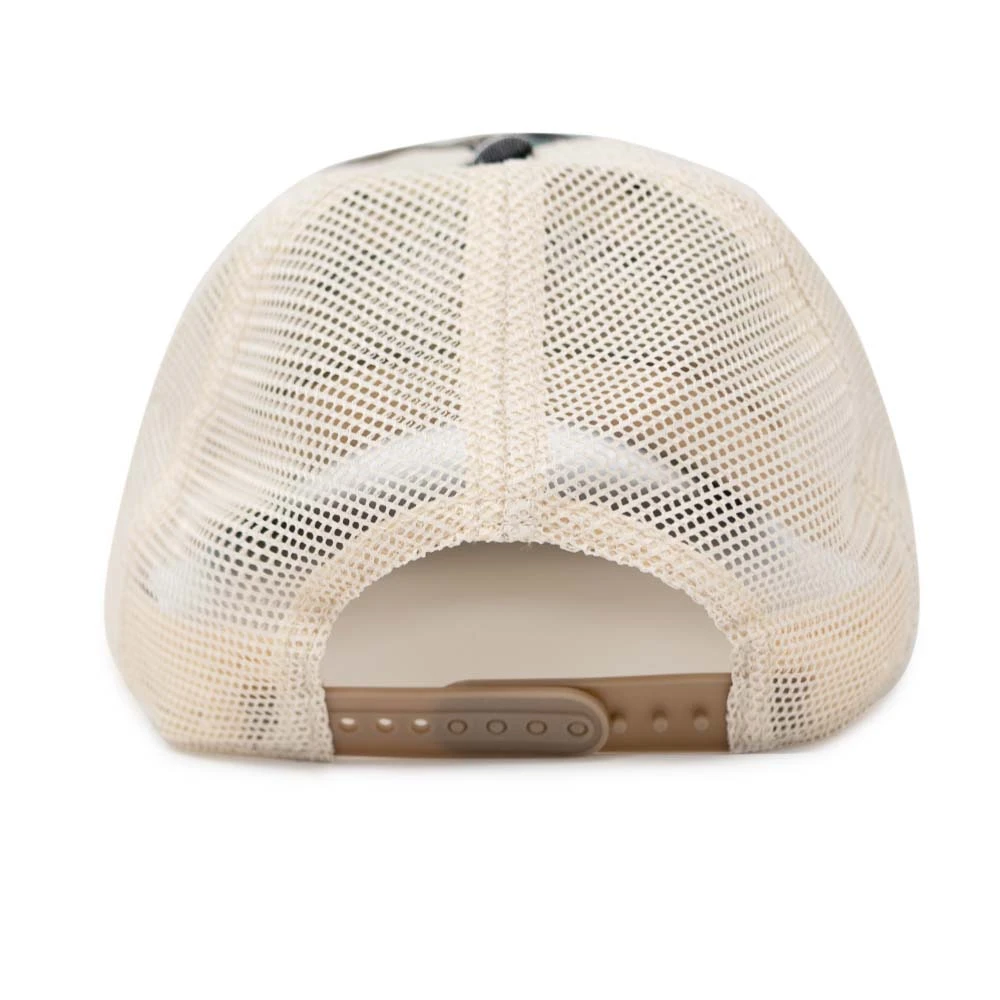 - STYLE: Stone Brown washed soft mesh with contrast stitching and plastic snap closure.