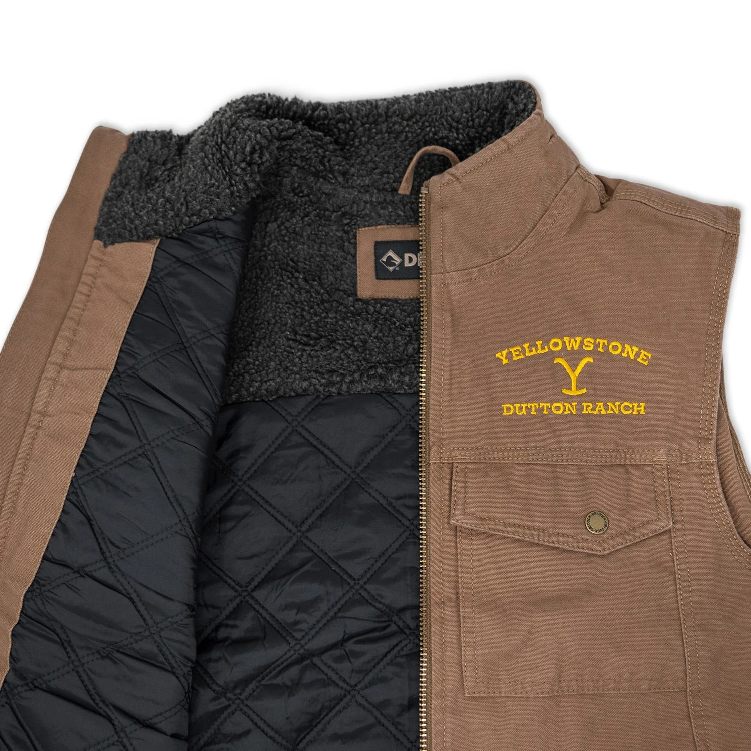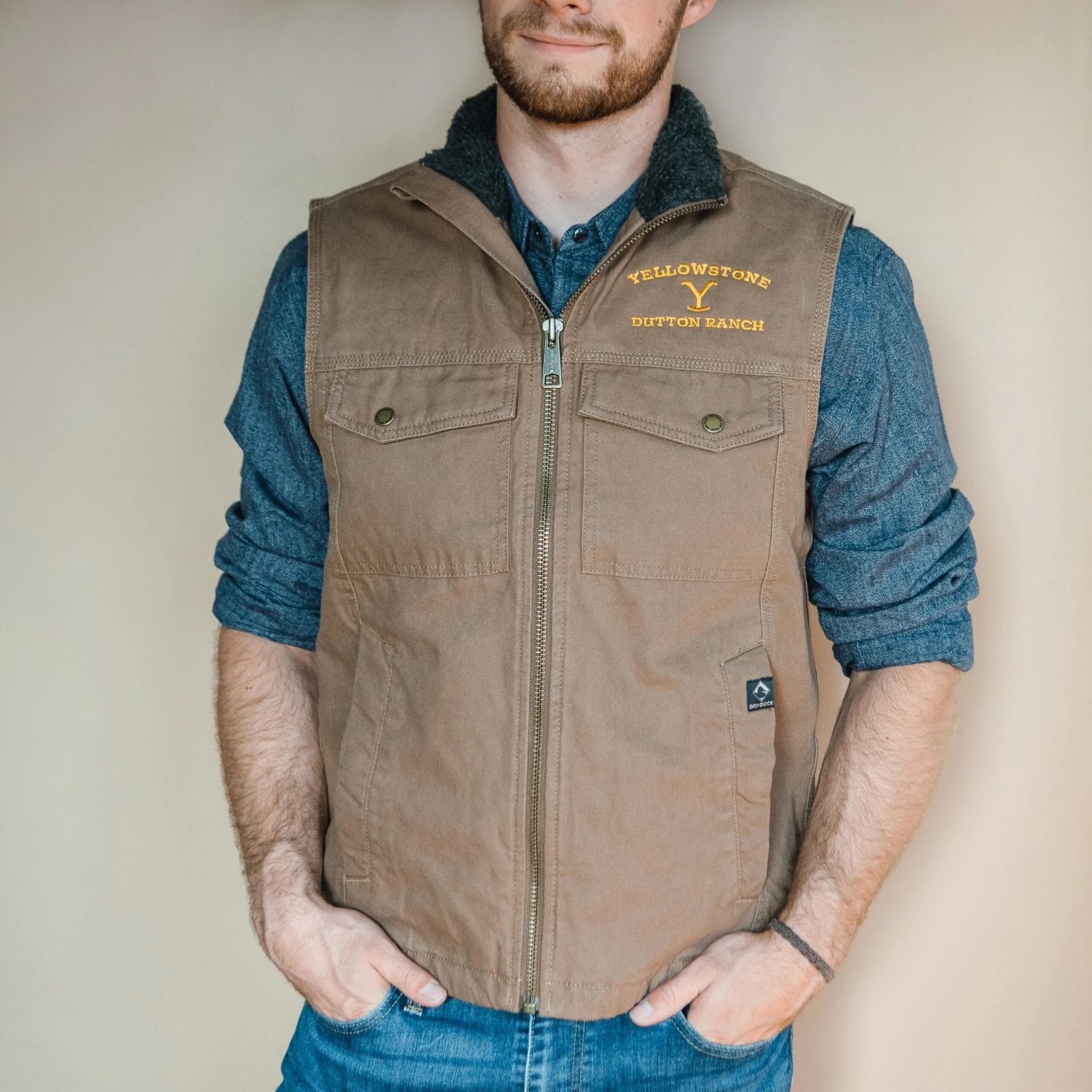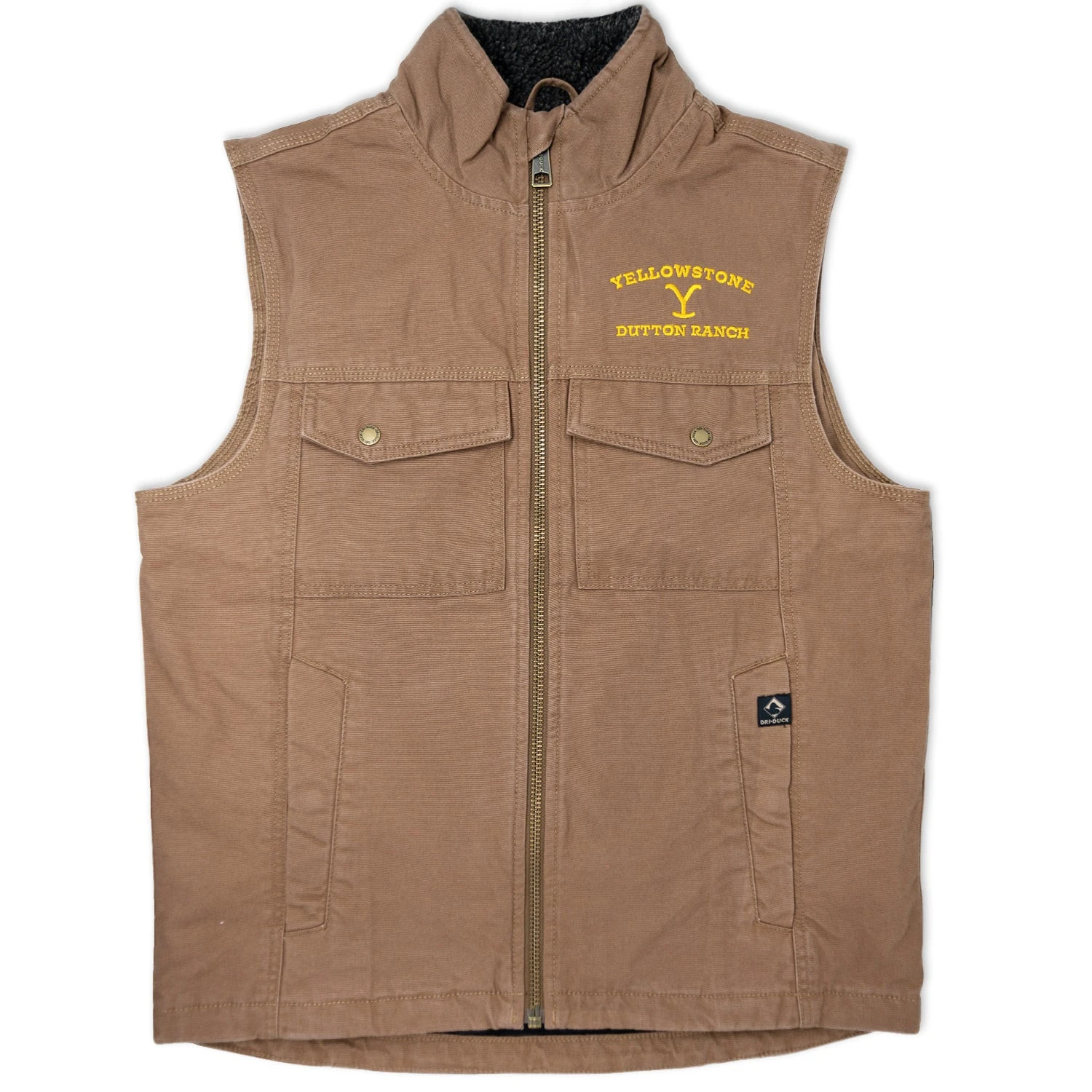 As seen on the show, this Yellowstone Logo Cloth Vest is perfect to wear as you tend to the Dutton Ranch in style. Made with 100% Cotton Canyon Cloth Canvas and featuring a cell phone pocket on the inside, this premium quality Yellowstone vest will become a staple in your wardrobe.