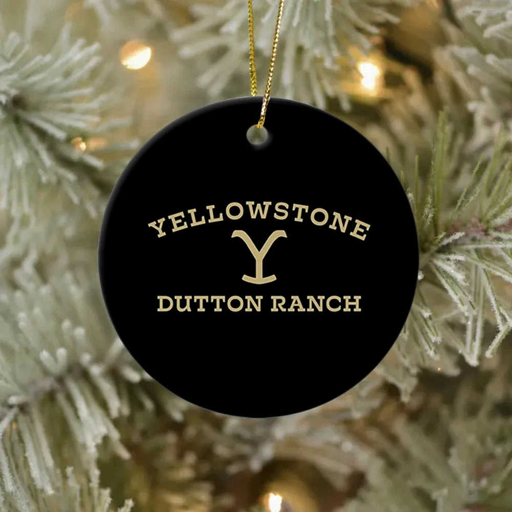 Get your tree holiday ready by hanging this classic Yellowstone Dutton Ranch Logo Double Sided Round Ceramic Ornament for everyone to see. Featuring the eye-catching Yellowstone Dutton Ranch logo, this ornament is sure to fill all fans of Yellowstone with holiday cheer.
