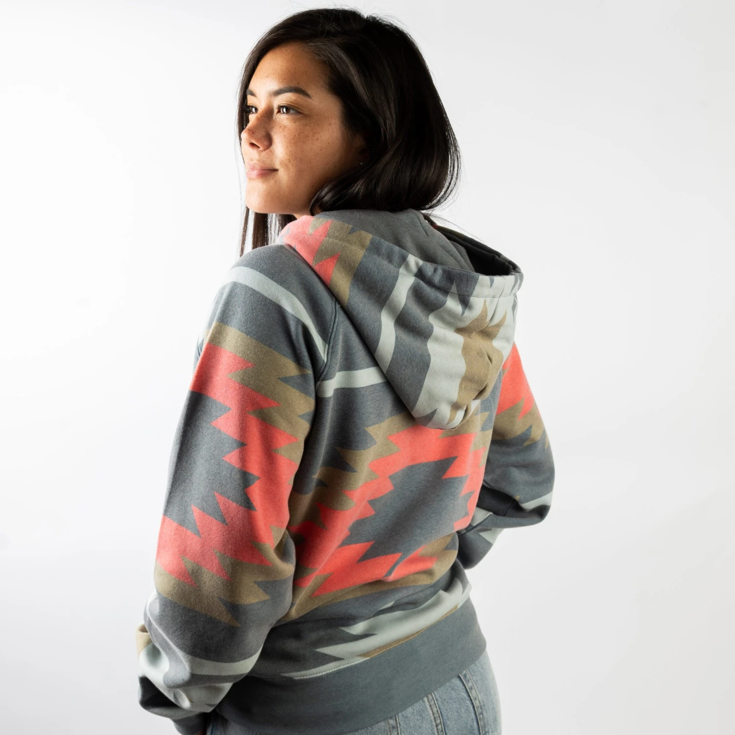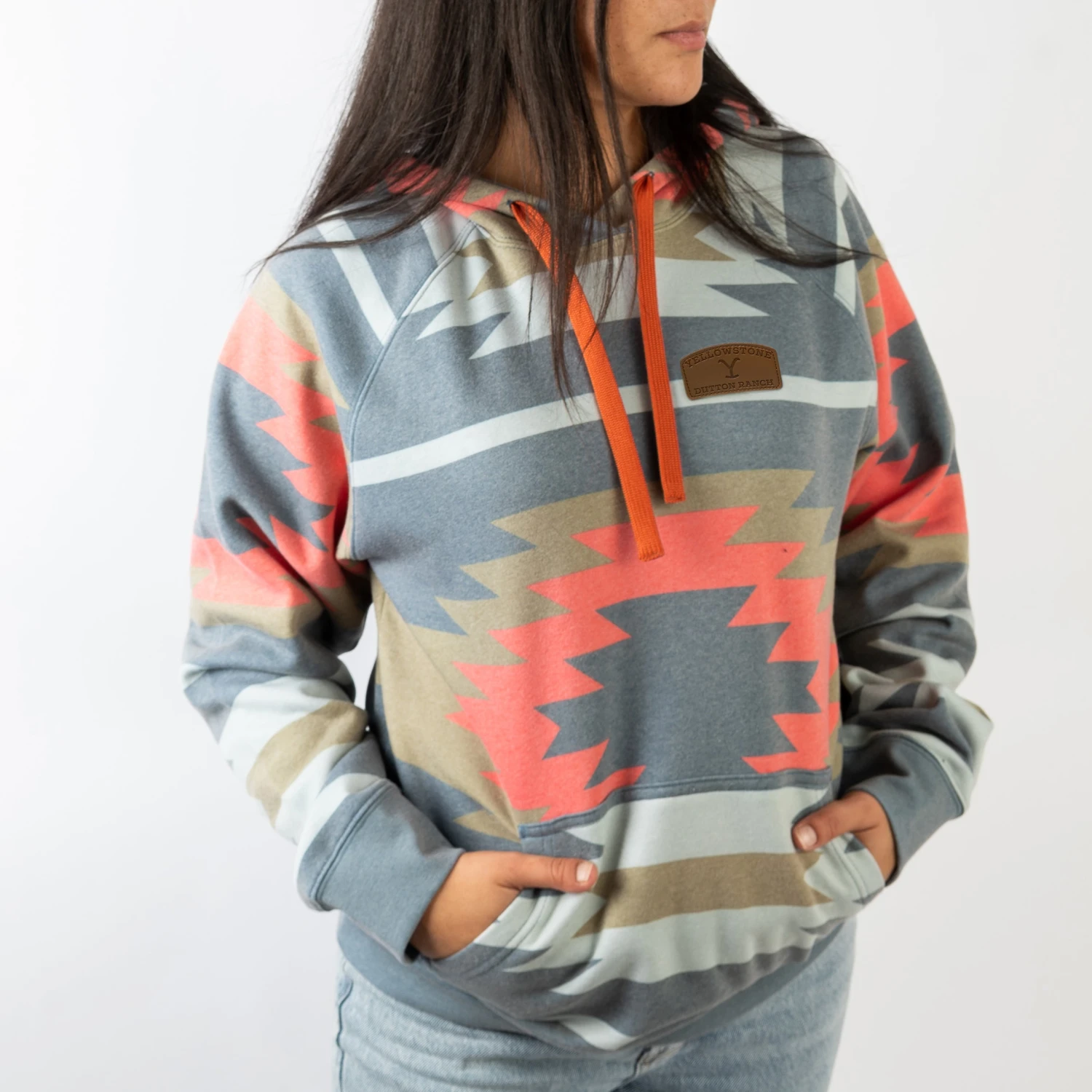 Redefine your comfort zone with our incredibly soft custom Yellowstone Dutton Ranch Logo Overland Hoodie. This roomy, tri-fleece blended sweatshirt features thick drawstrings for an athletic look and a kangaroo pocket. With the Yellowstone Dutton Ranch patch on the left chest and an aztec print all over, just one touch of this extra-comfy fabric and you’ll never want to let it go.