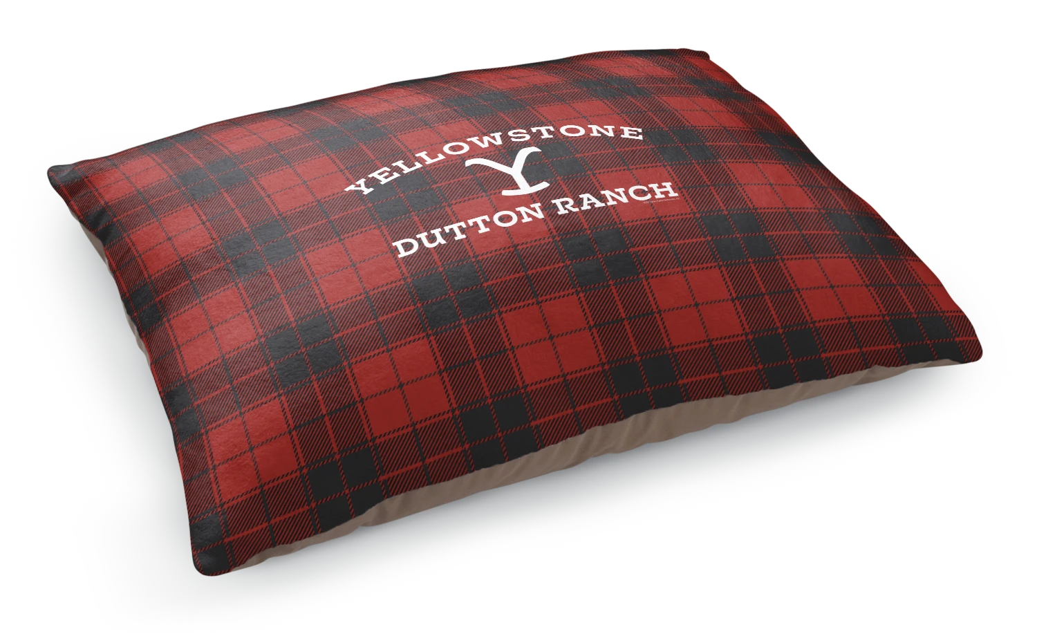 It may not be a ranch, but it sure feels like home. Set your dog or cat on Yellowstone Dutton Ranch Plaid Pet Bed. Printed with the show logo, this mega-plush pillow is the perfect place for your pup to rest their paws.