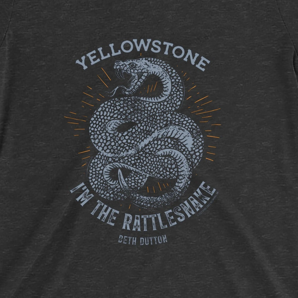 The Yellowstone Beth Dutton “I’m the Rattlesnake” Women’s T-Shirt, Features the iconic quote from the fierce and fearless character, Beth Dutton, this t-shirt is perfect for fans of the series. Whether you’re exploring the great outdoors or simply running errands around town, this t-shirt is sure to make a statement.