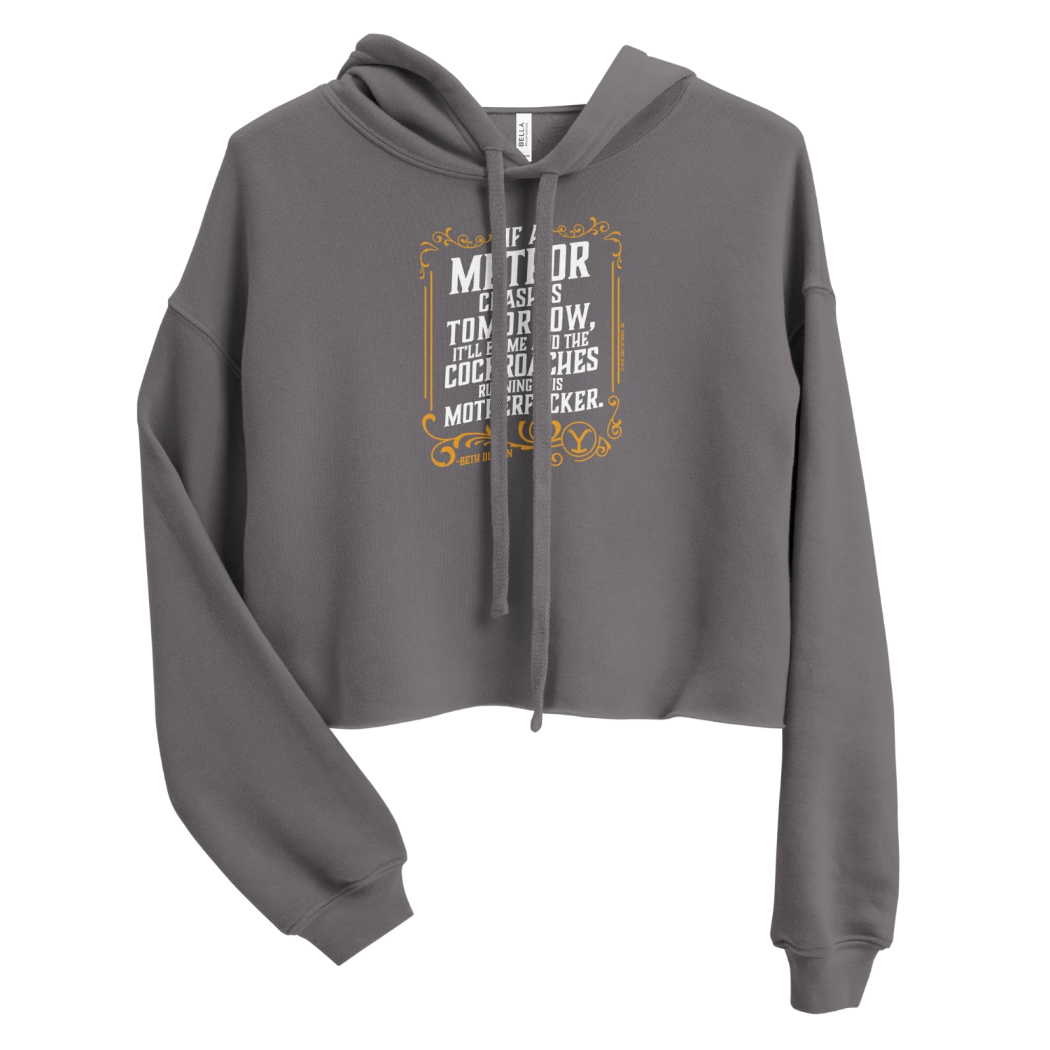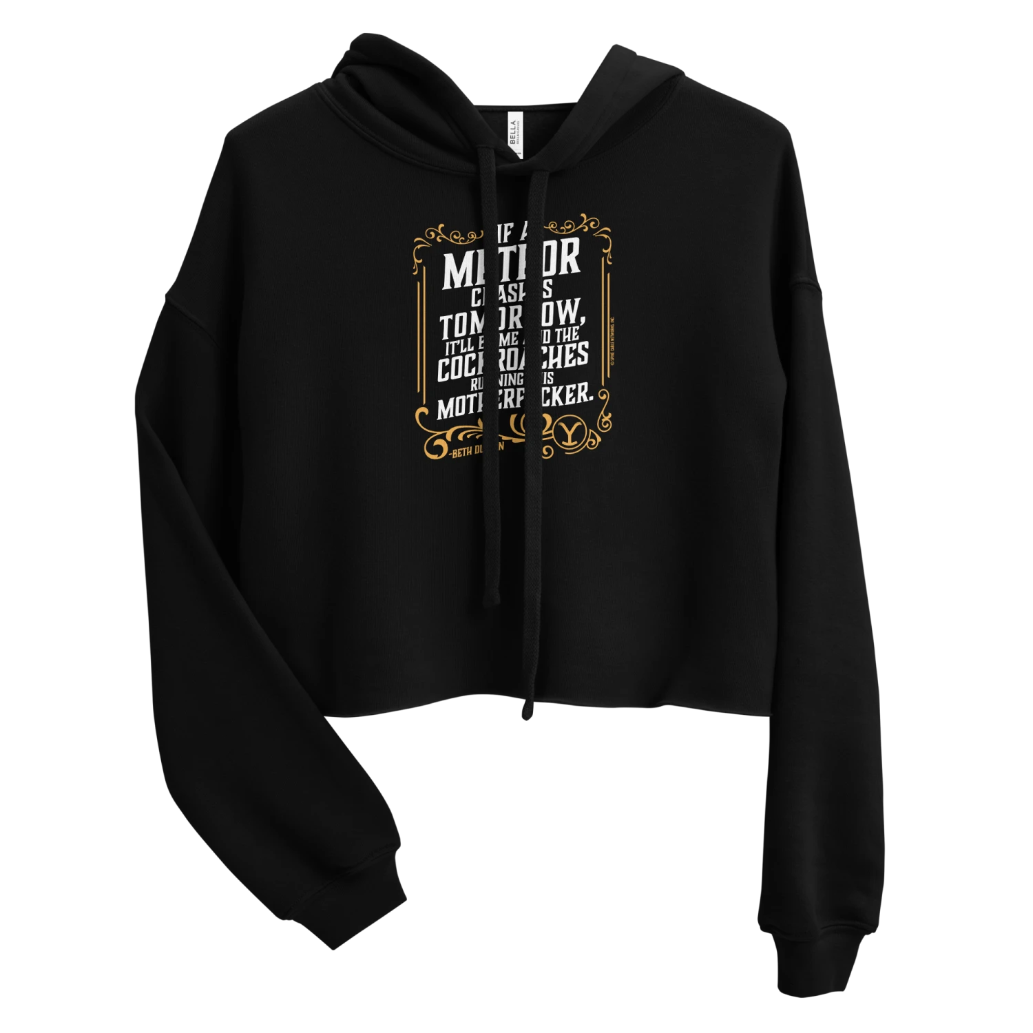 Worry not, daddy. Only the good die young when they wear this Yellowstone If A Meteor Crashes Tomorrow Women’s Fleece Crop Hooded Sweatshirt. Featuring an iconic quote that any Beth Dutton fan will appreciate, this Yellowstone If A Meteor Crashes Tomorrow Women’s Fleece Crop Hooded Sweatshirt is a must-have.