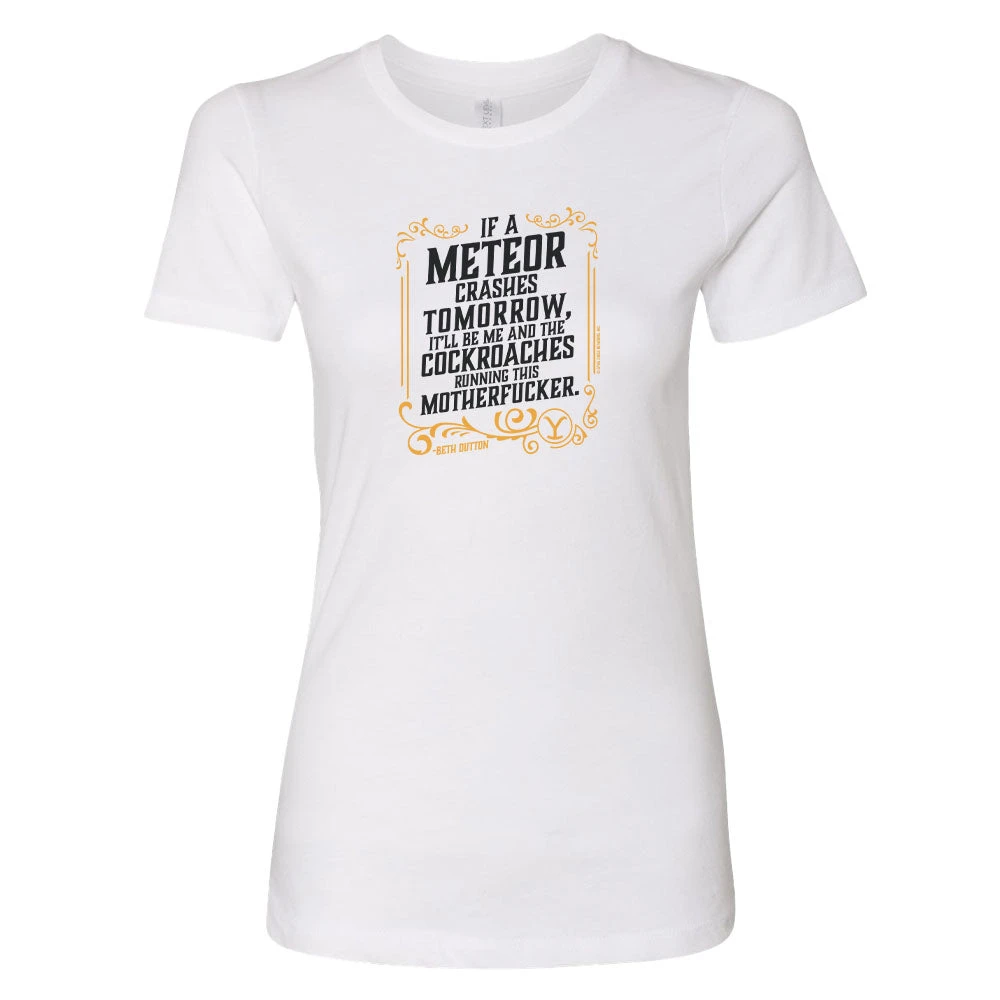 Worry not, daddy. Only the good die young when they wear this Yellowstone If A Meteor Crashes Tomorrow Women’s Short Sleeve T-Shirt. Featuring an iconic quote that any Beth Dutton fan will appreciate, this Yellowstone If A Meteor Crashes Tomorrow Women’s Short Sleeve T-Shirt is a must-have.