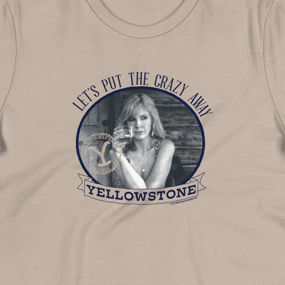 Introducing our new Yellowstone Let’s Put the Crazy Away Women’s T-Shirt featuring Beth Dutton and her iconic quote, “Let’s Put the Crazy Away.” Made with high-quality materials, this shirt is perfect for fans of the TV show who want to show off their love for Beth and her no-nonsense attitude.