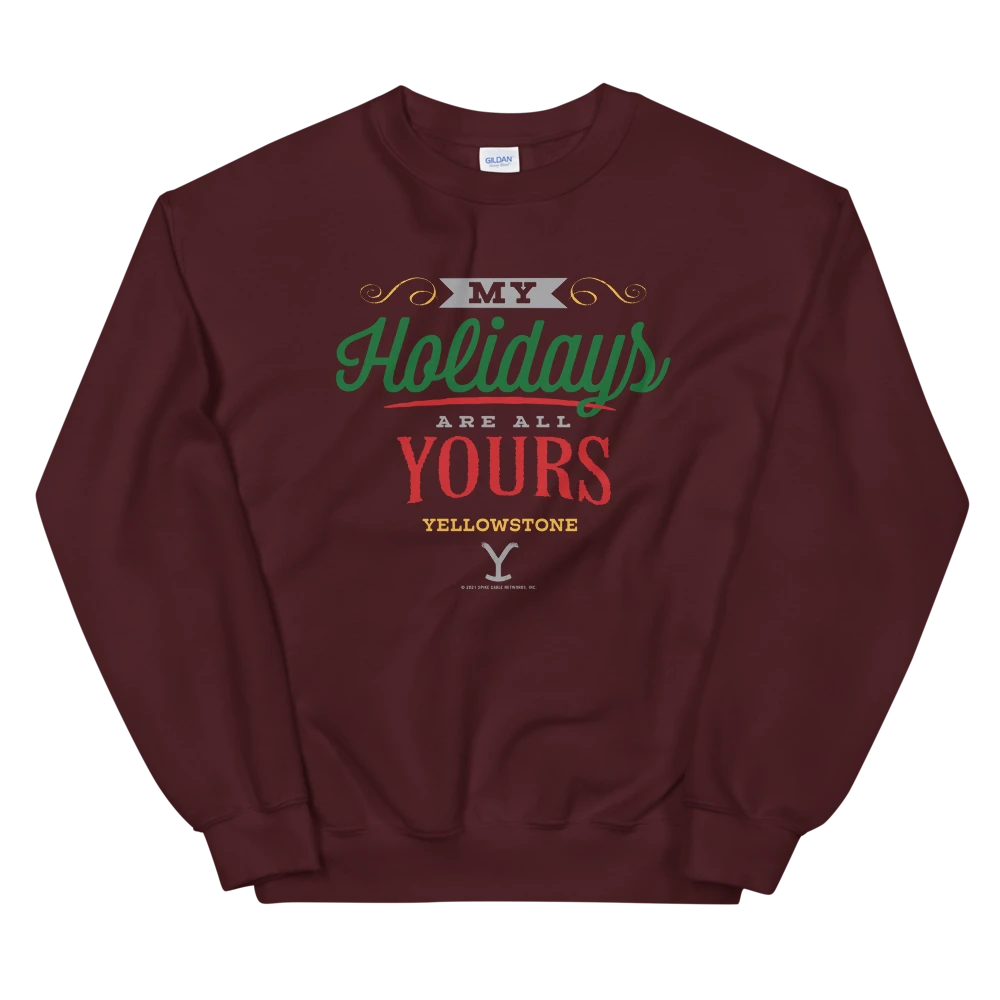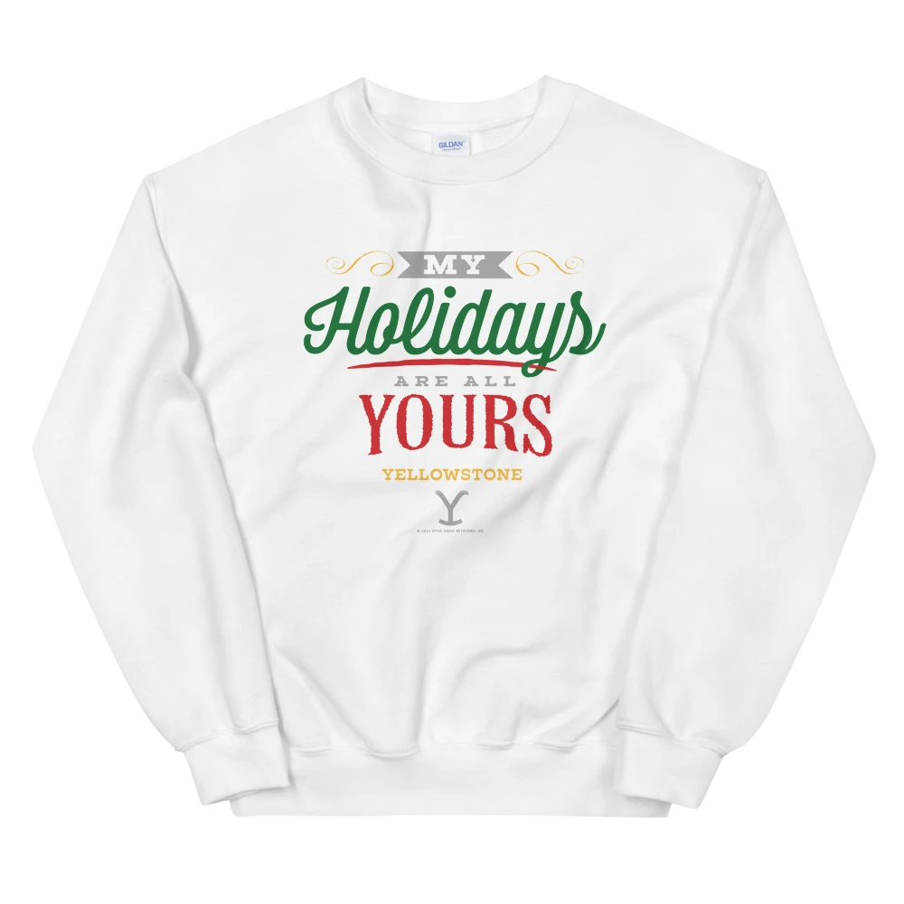 Stay cozy and show your love for Rip as you catch up on Yellowstone in this Yellowstone “My Holidays Are All Yours” Crew Neck Sweatshirt. With a comfortable interior and holiday design that any fan will love, this Yellowstone Crew Neck Sweatshirt is a great addition to your cool-weather wardrobe.