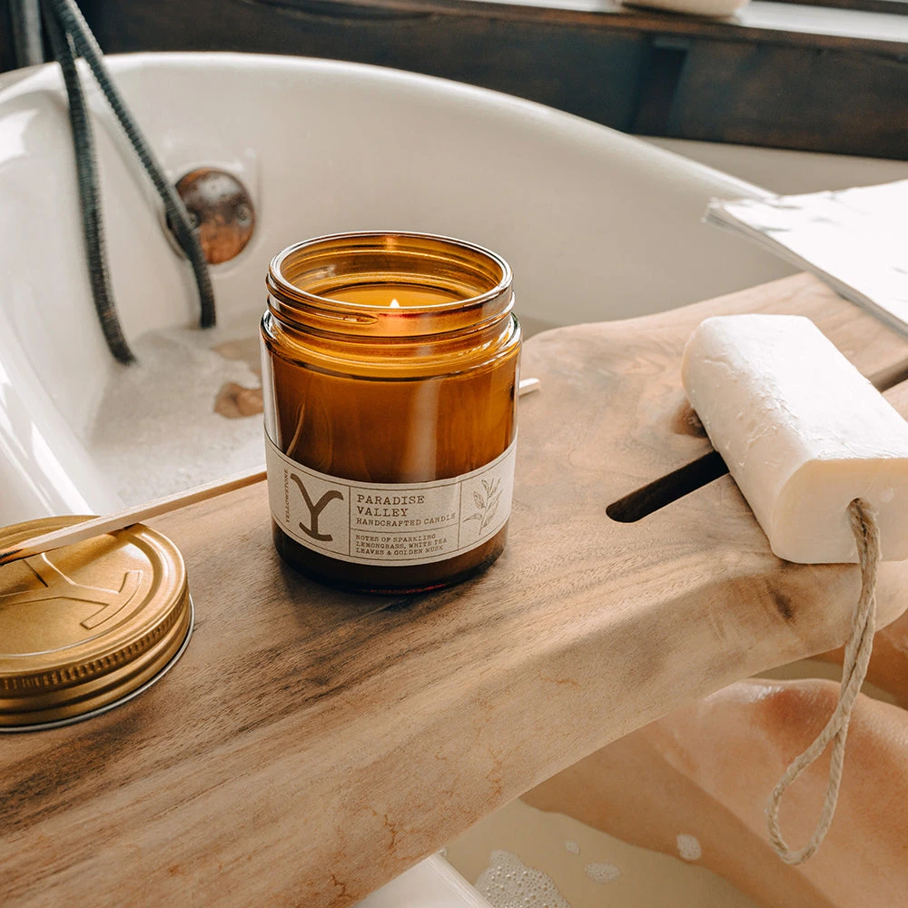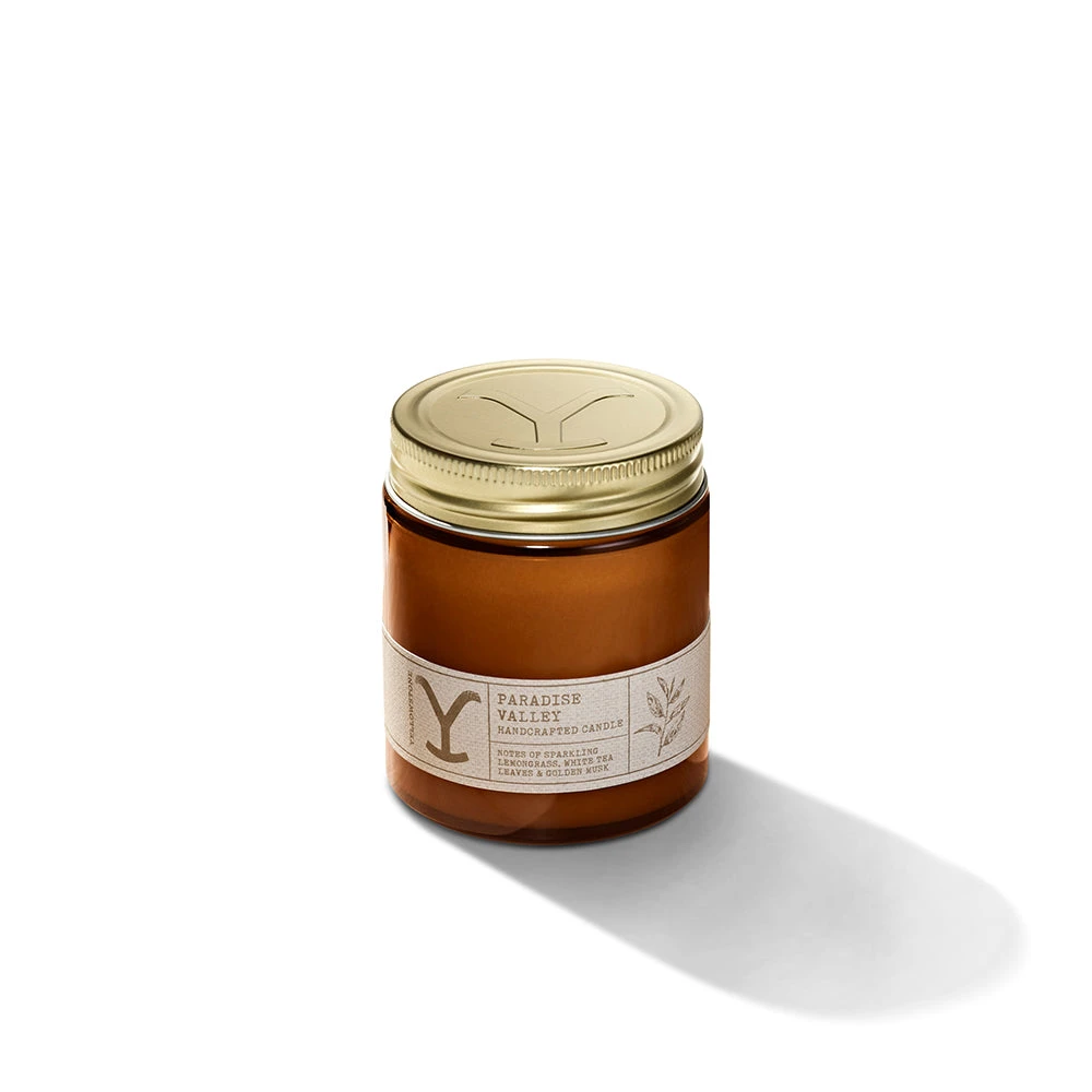 Transport yourself to the breathtaking landscapes of the renowned Dutton Ranch with the Official Candle of Paramount Network’s hit show Yellowstone. The Paradise Valley candle features a refreshing blend of sparkling lemongrass, delicate white tea leaves, and warm golden musk—reminiscent of stunning scenery and natural beauty.