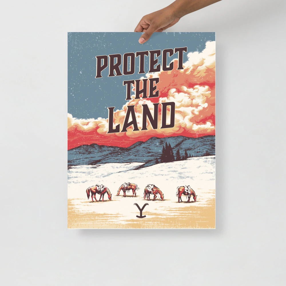 Bring the wisdom of John Dutton to your media room, office or bedroom with this colorful Yellowstone Protect the Land Poster. The spare, clean design and big-sky feel will let you daydream your way onto the Dutton Ranch anytime you need an escape!