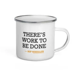 When you work at Dutton Ranch, there is always work to be done. Gear up for a hard day of work by enjoying your coffee from this Yellowstone There’s Work to be Done White Enamel Mug. Featuring a quote from Rip Wheeler, this Yellowstone enamel mug is perfect for any fan of the series.