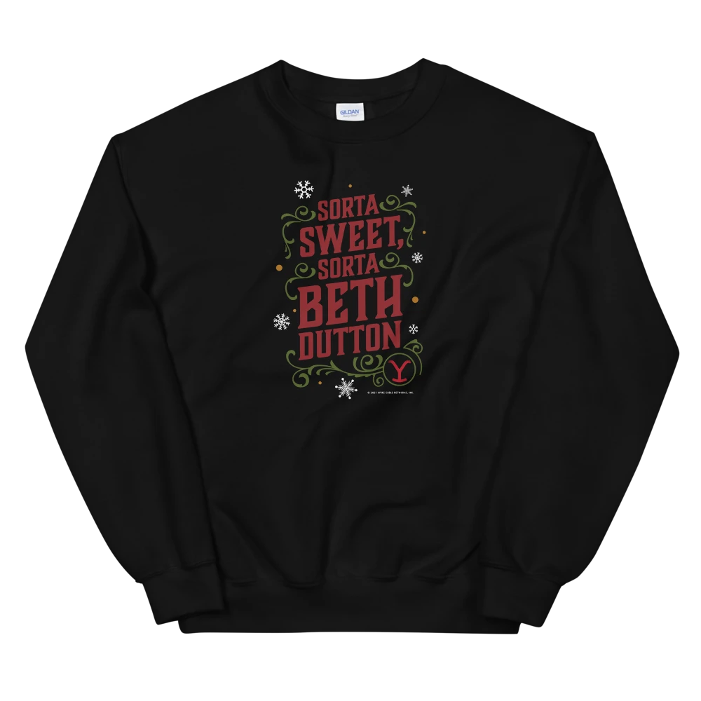 Make sure to be “Sorta Sweet, Sorta Beth Dutton” this holiday season! Featuring this now classic phrase, the Yellowstone Sorta Sweet Sorta Beth Dutton Holiday Crew Neck Sweatshirt is sure to fill any Beth Dutton fan with holiday glee.