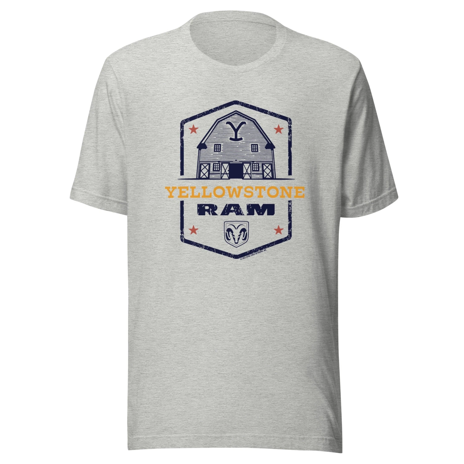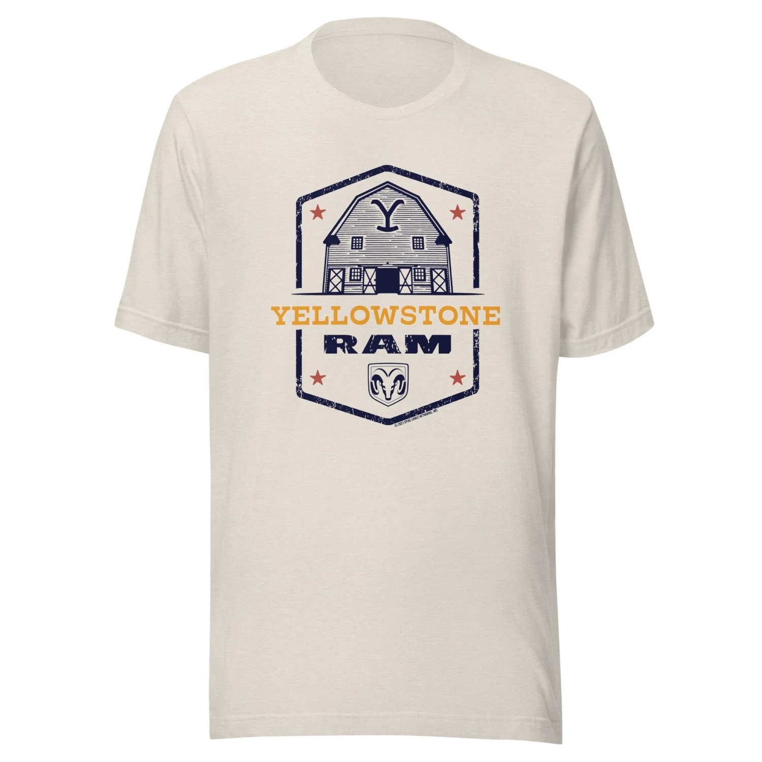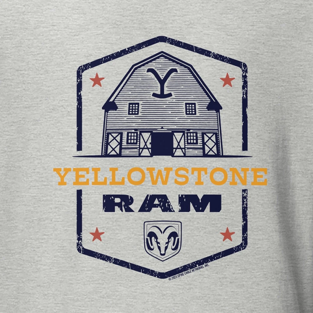The ultimate combination of ruggedness and nature with the Yellowstone x Ram Trucks Barn T-Shirt. This classic tee features a rustic barn graphic, adorned with the iconic logos of both Yellowstone and Ram Trucks.