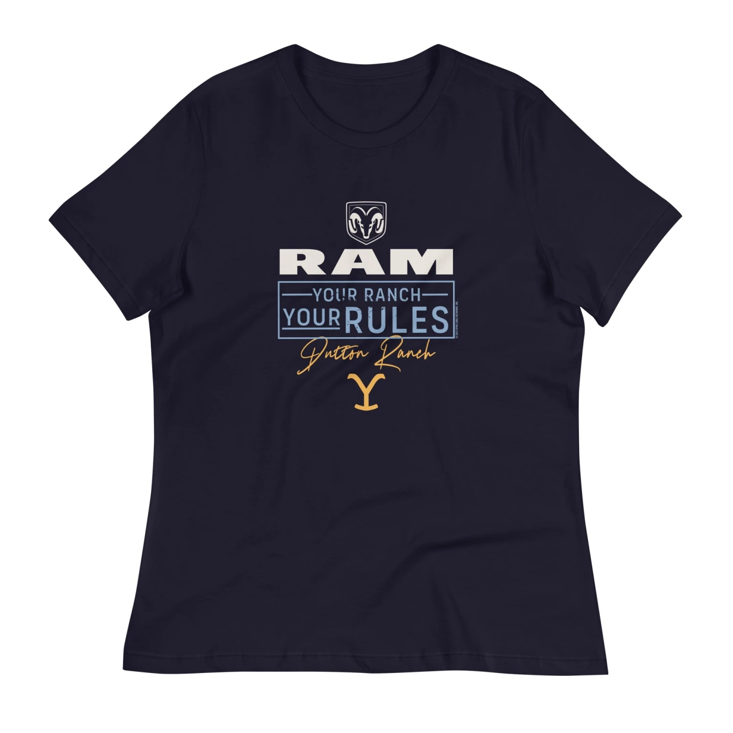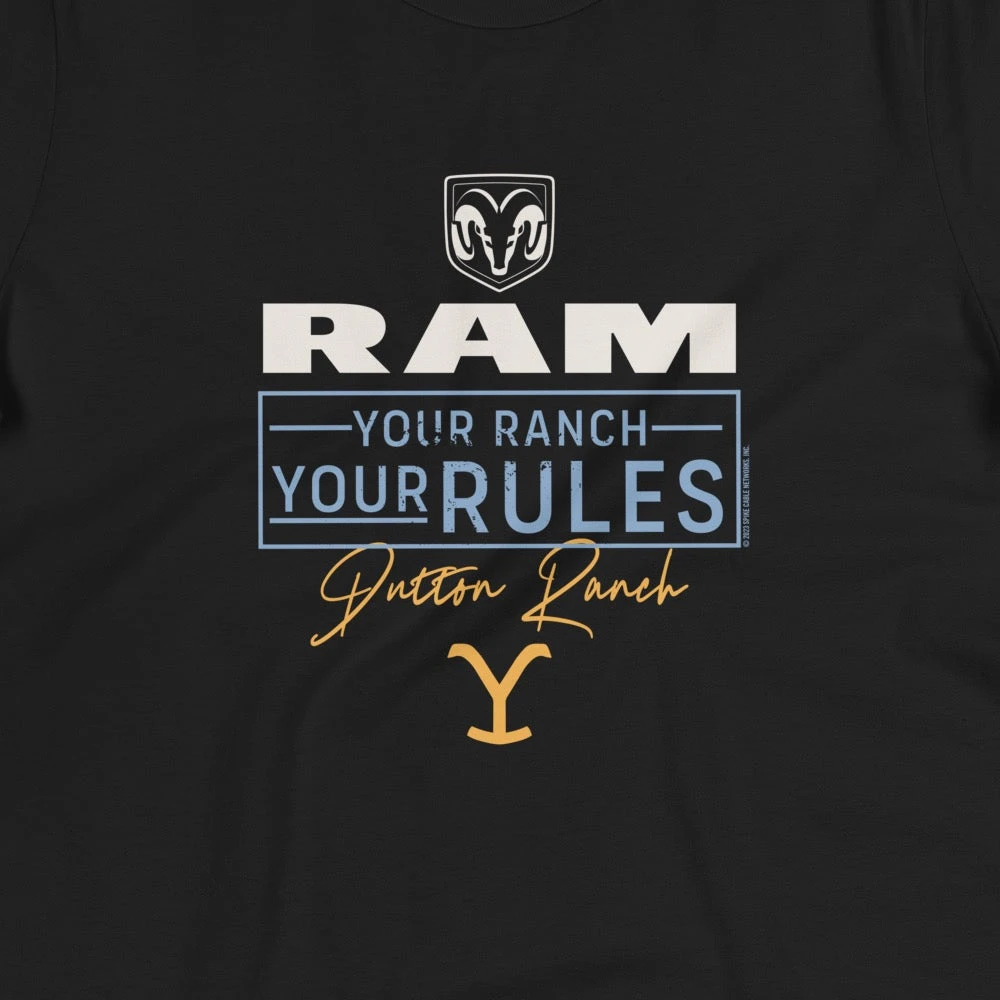 A T-shirt that both fans of Yellowstone and Ram can enjoy – the Yellowstone x Ram Truck Your Ranch Your Rules T-Shirt. This shirt features a striking design with the Ram Truck and Yellowstone logos emblazoned on the front, along with the words “Dutton Ranch” to show your support everybody’s favorite ranch.